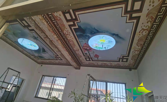 熱烈祝賀我公司泰安市寧陽家裝軟膜天花吊頂吸頂燈箱安裝順利完工,此家裝整體采用軟膜天花進行吊頂裝飾,主題風格為中式荷花主題,吸頂燈采用我公司鋁材折彎圓形制作,燈箱畫面也為荷花,契合主題風格,安裝效果得到了業主的一致好評,在此感謝客戶對樂創品牌吊頂天花軟膜的認可。 實際安裝效果如下圖: